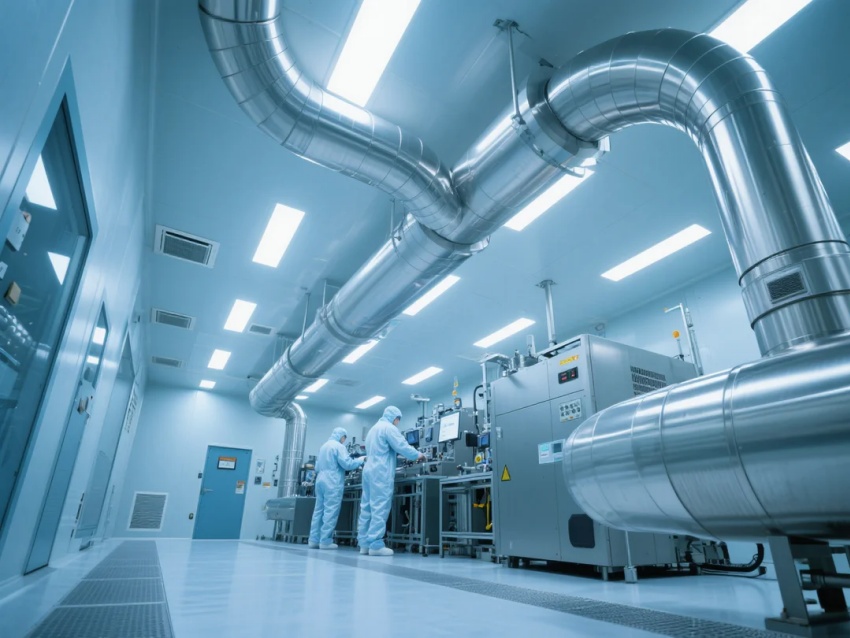 圍護系統(tǒng):采用50mm厚金屬夾芯彩鋼板墻體,表面覆有抗靜電涂層,接縫處采用圓弧過渡設(shè)計,避免積塵。天花板采用FFU(風機過濾單元)滿布布局,配合高效HEPA過濾器,確保垂直層流氣流組織,潔凈度穩(wěn)定控制在≤1,000顆粒/立方米(≥0.5μm)。
