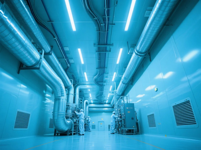 智能化控制:集成環(huán)境監(jiān)測系統(tǒng),實時顯示溫濕度、壓差及粒子濃度數(shù)據(jù),聯(lián)動空調(diào)機組自動調(diào)節(jié),確保工藝環(huán)境穩(wěn)定。設(shè)備區(qū)采用不銹鋼圍擋,并設(shè)置黃光防眩照明,減少光學干擾。整體設(shè)計兼顧潔凈效能、耐久性與智能化管理,滿足半導(dǎo)體制造的高標準要求。