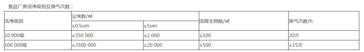 2、按照生產(chǎn)工藝和衛(wèi)生、質量要求,劃分潔凈級別,具體級別及要求: